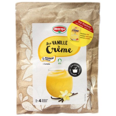 Ingrédients: sucre brut* (Amérique centrale), amidon de maïs* (Europe), farine de caroube*, extrait de vanille* 0.3%, poudre de vanille bourbon* 0.1%, curcuma*.