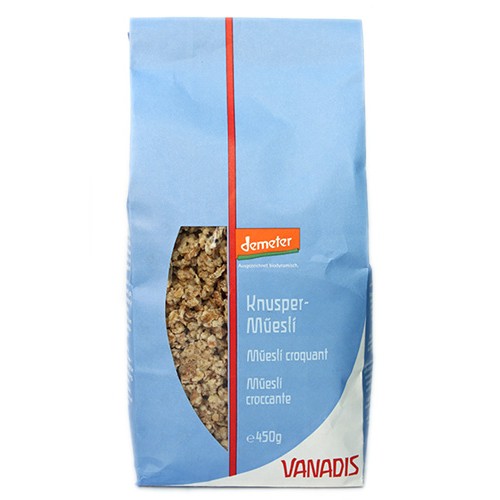 Ingrédients: flocons de froment complet*, sucre de canne brut*, flocons d'avoine complète*, huile de tournesol**, avoine complète égrugée*, sel marin, vanille-bourbon**.